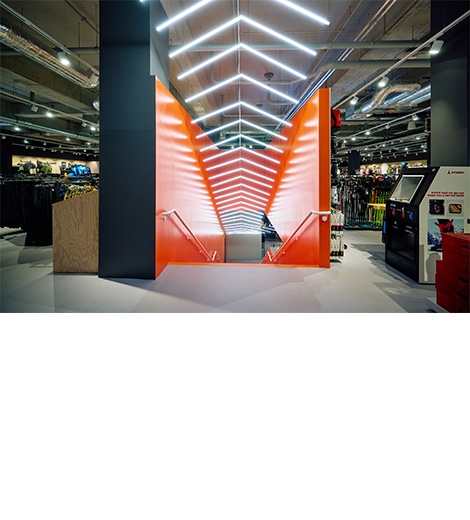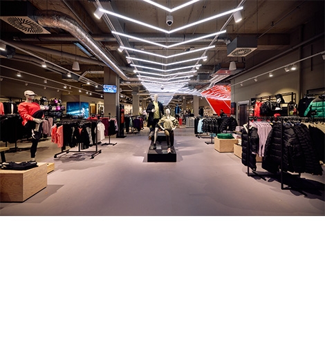 Innenausbau eines Sportfachgeschäfts auf zwei Etagen